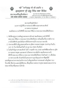 สมาคมนามธารีสังคัตแห่งประเทศไทย แจ้งแนวทางปฏิบัติ สำหรับศาสนิกชนซิกข์-นามธารี