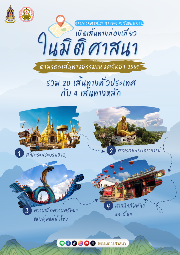 กรมการศาสนา ประกาศเส้นทางท่องเที่ยว “ตามรอยเส้นทางธรรมแห่งศรัทธา” นำทุนศาสนาสร้างสะพานบุญ เสริมเศรษฐกิจ