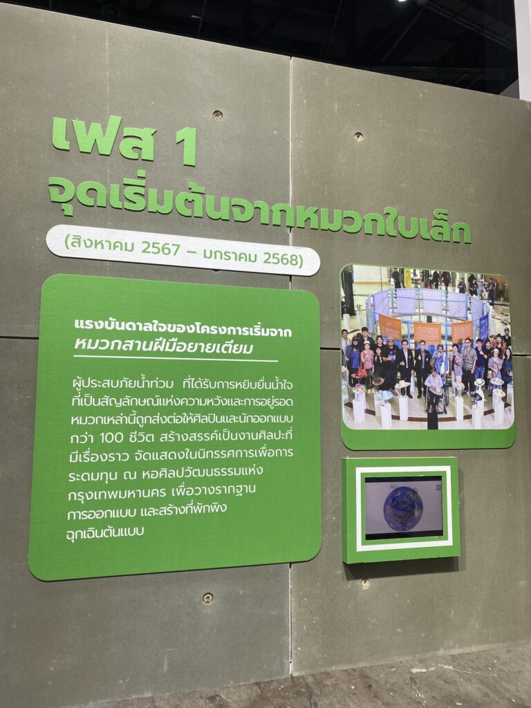 แรงบันดาลใจของโครงการเริ่มจากหมวกสานฝีมือยายเตียมผู้ประสบภัยน้ำท่วม ที่ได้รับการหยิบยื่นน้ำใจที่เป็นสัญลักษณ์แห่งความหวังและการอยู่รอดโดยหมวกเหล่านี้ถูกส่งต่อให้ศิลปินและนักออกแบบกว่า 100 ชีวิตทั่วโลก สร้างสรรค์เป็นงานศิลปะที่มีเรื่องราว เคยจัดแสดงในนิทรรศการเพื่อการระดมทุน ณ หอศิลปวัฒนธรรมแห่งกรุงเทพมหานคร เพื่อวางรากฐานการออกแบบ และสร้างที่พักพิงให้กับคนไทยและคนต่างแดน